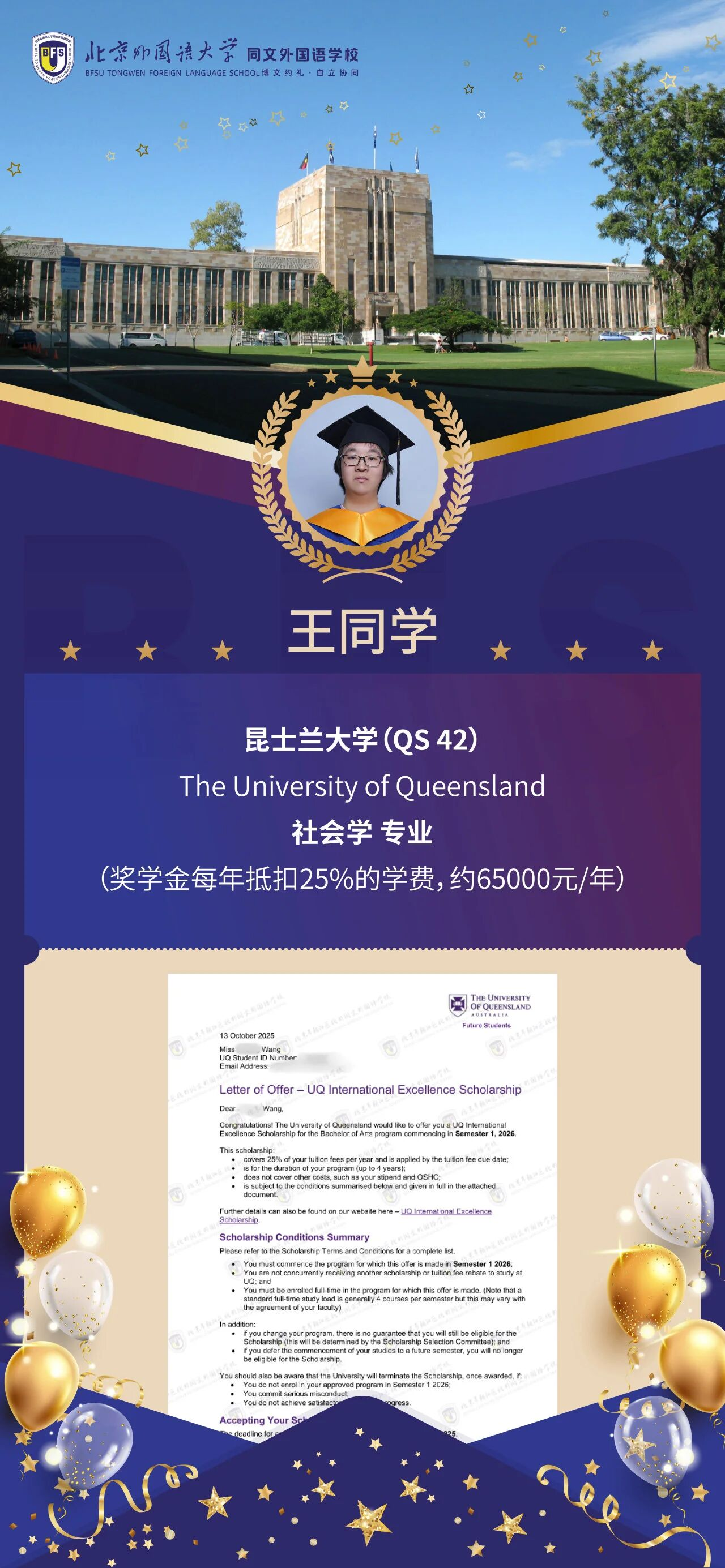 2026錄取季剛剛拉開序幕,北外同文校園已佳音不斷、碩果連連。我校多名學(xué)子憑借優(yōu)異的學(xué)術(shù)成績、出色的綜合素養(yǎng)與鮮明的個人特質(zhì),在全球競爭中嶄露頭角,率先斬獲多封澳大利亞八大名校的錄取通知!熱烈祝賀所有收獲夢想offer的同學(xué)們!